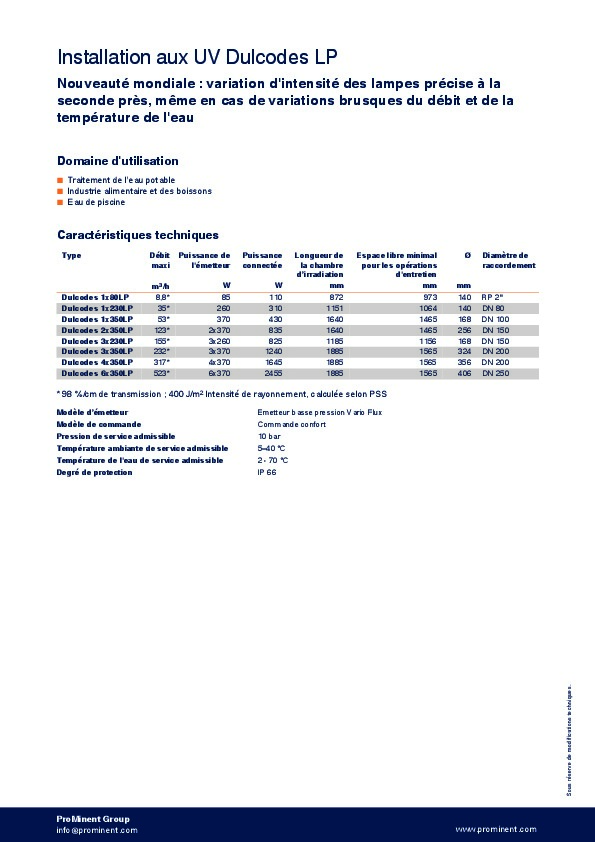 - Les installations aux UV exclusives Dulcodes LP représentent l'avenir dans le domaine du traitement de l'eau, pour une efficacité maximale sans produits chimiques.