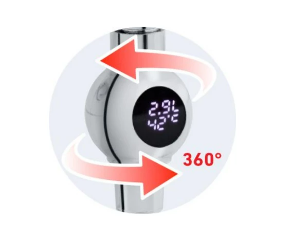 Le dispositif fonctionne sans piles grâce à un générateur électrique intégré, ce qui évite les opérations de maintenance liées au remplacement d’alimentation. L’afficheur peut être orienté librement sur 360° pour faciliter la lecture selon la configuration de la douche. Un indicateur de consommation permet d’afficher une plage de 0 à 99,9 L ; au-delà de 100 L, l’affichage reprend à partir de 0. La réinitialisation de l’affichage s’effectue par coupure de l’arrivée d’eau.