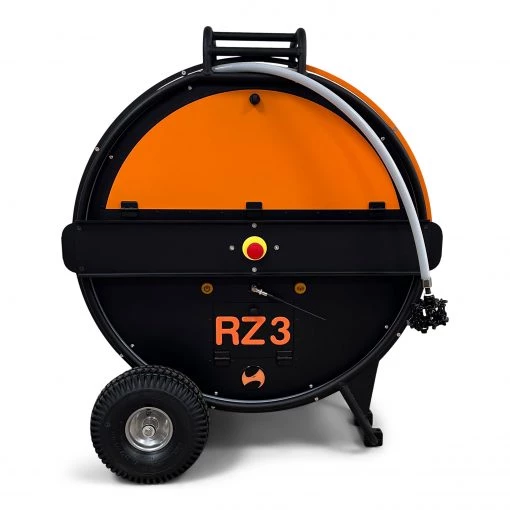 La RZ3 offre la possibilité de choisir entre un arbre flexible de 35 mètres de 10 mm ou de 30 mètres de 12 mm, permettant une adaptation facile selon les besoins. Son design compact permet une utilisation aussi bien à la verticale qu'à l'horizontale, et son faible encombrement facilite son passage dans des espaces restreints. Grâce à ses grandes roues tout-terrain, elle est facilement transportable sur des surfaces difficiles. De plus, elle est conçue pour être manipulée par une seule personne, répondant aux standards de RENZORATO® en matière de simplicité d'utilisation. Son système de sécurité par couple intégré (e-clutch) protège le moteur en cas de blocage de l'outil. La télécommande radio de haute qualité, dotée d'une réception solide et d'un affichage complet des vitesses, permet une opération facile et fiable sur le terrain.