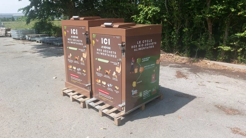 Mettre en place des points d'apport volontaire de biodéchets sous forme de cache-poubelle metallique, afin de dissimuler les conteneurs tout en conservant une exploitation simple (usage, collecte, maintenance). La solution peut etre mise en oeuvre via le Collecteur de bio-dechets ECONOX.