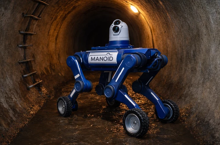MANOÏD propose un service d’inspection, de reconnaissance et de surveillance à distance des zones techniques complexes via le déploiement du robot métier tout-terrain MANOID MQ02, en mode autonome ou téléopéré. La prestation démarre par un cadrage opérationnel (objectifs de contrôle, zones à couvrir, contraintes d’accès, exigences HSE), puis par la préparation mission (choix des capteurs et BackPacks, paramétrage réseau, plan de navigation, tests de liaison). Sur site, le MQ02 réalise une reconnaissance avant engagement humain, avec transmission d’images et de données en temps réel par RF, permettant de valider l’état d’un ouvrage, détecter des anomalies visibles et décider d’une intervention ciblée. Le robot est conçu pour les environnements humides, poussiéreux et contraints grâce à son indice IP66 et sa plage de fonctionnement de -20 °C à +55 °C. Il franchit des marches jusqu’à 25 cm, des obstacles jusqu’à 80 cm, des pentes jusqu’à 45° et des passages confinés de 50 cm, ce qui réduit le recours aux engins lourds et limite les interruptions d’exploitation. La navigation s’appuie sur un LiDAR 96 lignes, une vision périphérique par nuage de points et un évitement d’obstacles omnidirectionnel, pour évoluer en galeries, réseaux visitables, stations d’épuration et sites industriels. La continuité de service est renforcée par 2 batteries échangeables à chaud, offrant jusqu’à 2,5 h d’autonomie avec matériel, avec un temps de charge de 1,5 à 2 h par batterie. Le MQ02 accepte une charge utile jusqu’à 15 kg et reste compact (820 × 430 × 570 mm) pour un déploiement rapide. Les données sont stockées localement (128GB, RAM 16GB) et les mises à jour à distance (OTA) garantissent un parc maintenu sans immobilisation prolongée. Différenciation : une solution réellement terrain, étanche et modulaire, combinant autonomie, téléopération, franchissement et continuité énergétique, pour diminuer l’exposition des agents, fiabiliser la prise de décision et accélérer les diagnostics avant intervention.